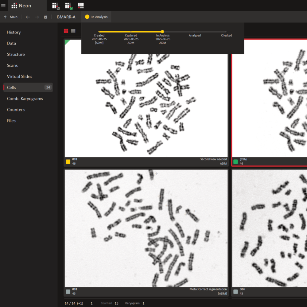 supports the validation of machine-generated karyogram proposals. - Customizable case and cell workflow states